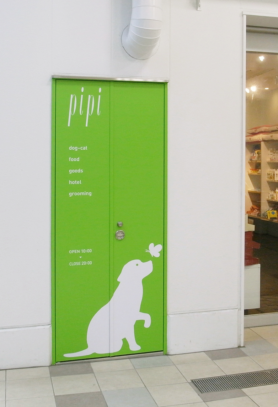 代々木上原駅ビル内のペットショップ「PiPi」のサインボードを作成、イラストも描きました。